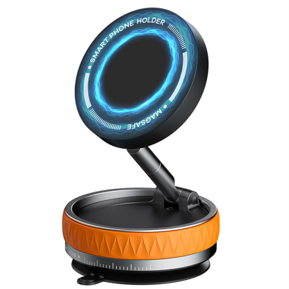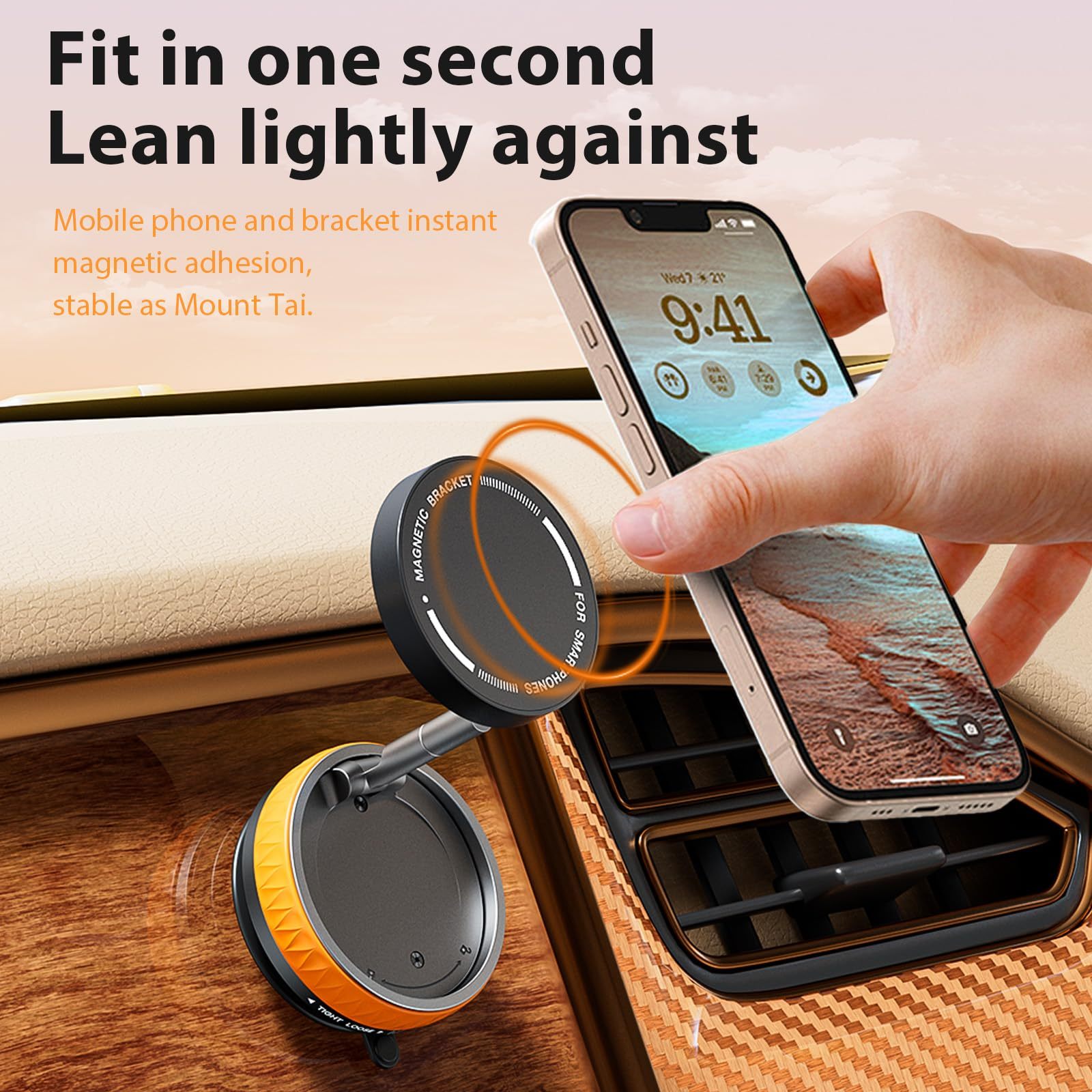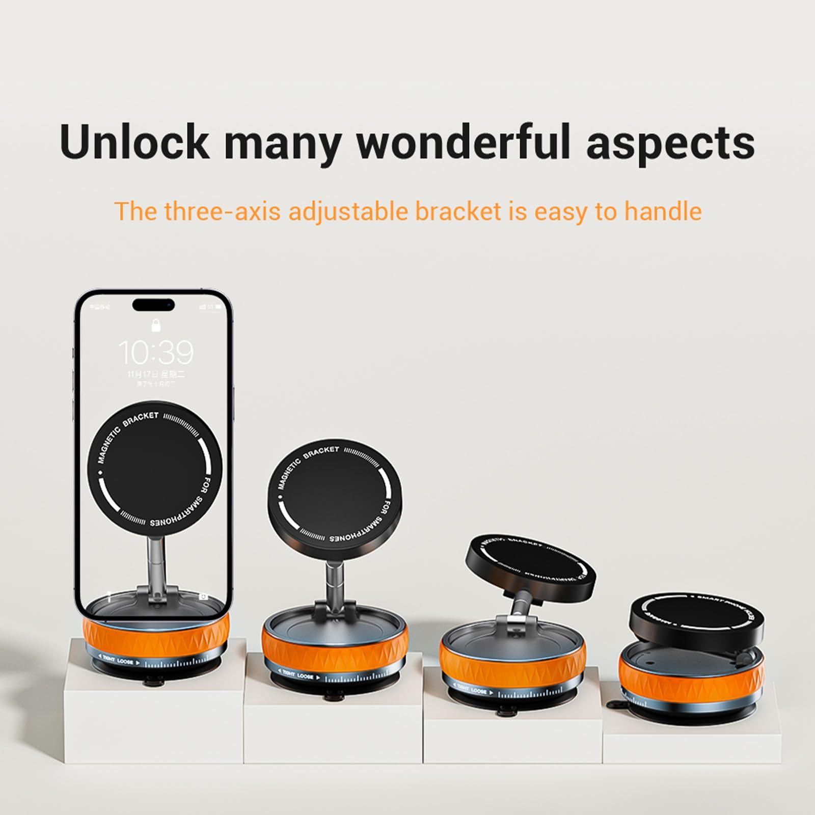 Vacuum Magnetic Phone Holder 360 Degree Rotatable Suction Cup Phone Mount,Foldable Vacuum Strong Magnet Cell Phone Stand for Car Smooth Surface(Orange)