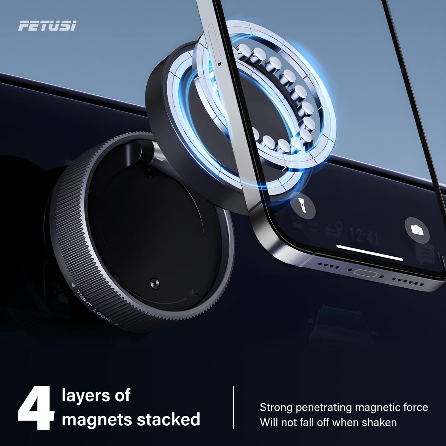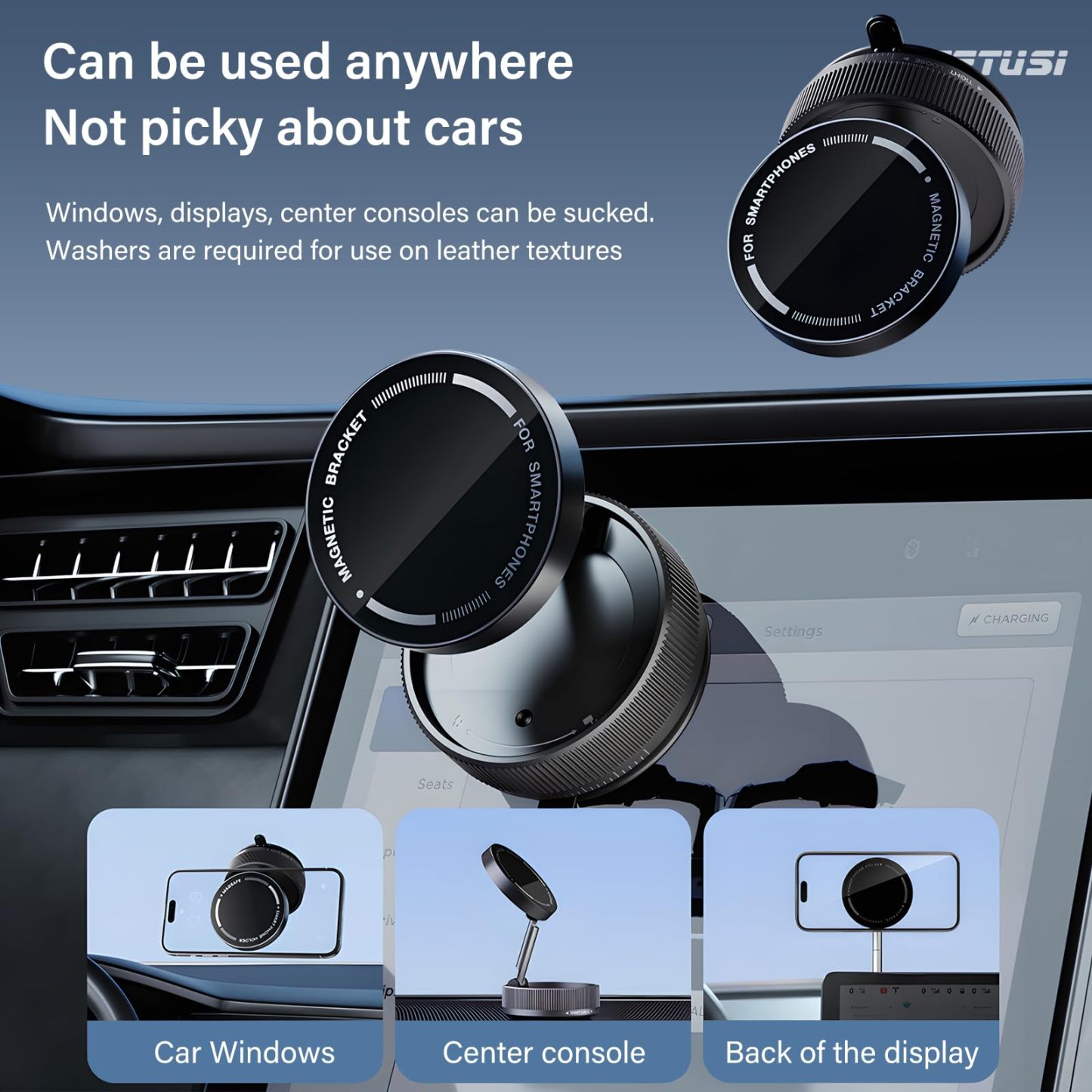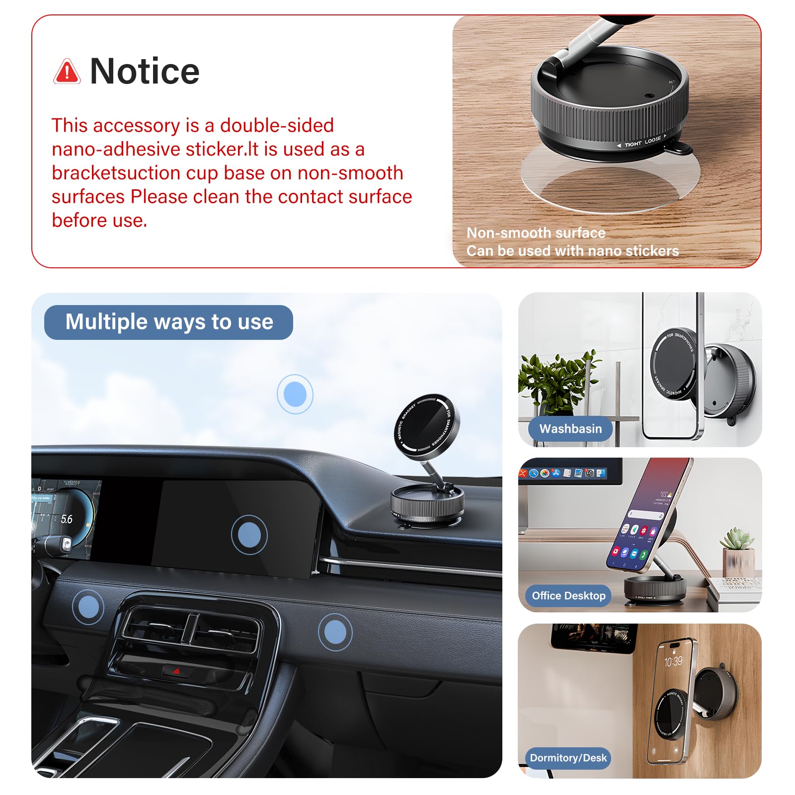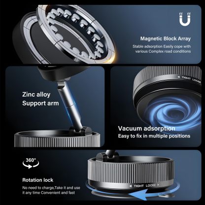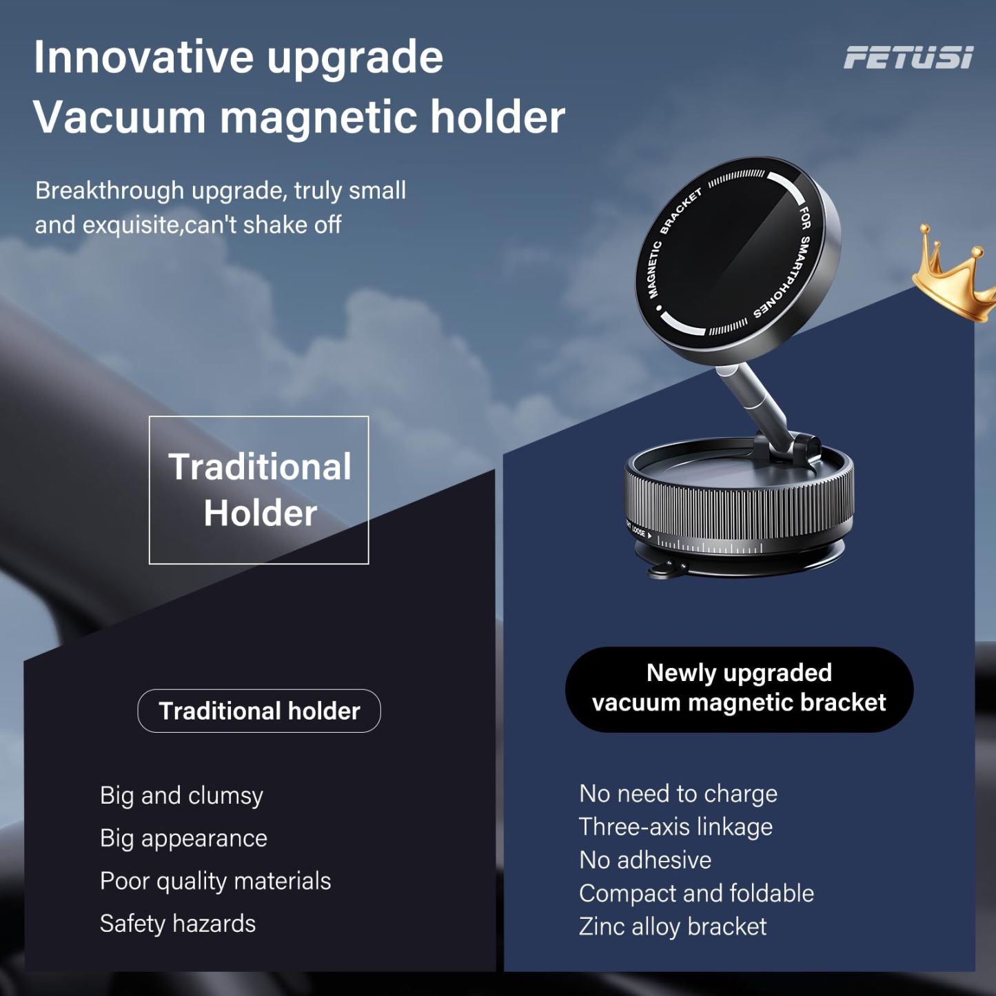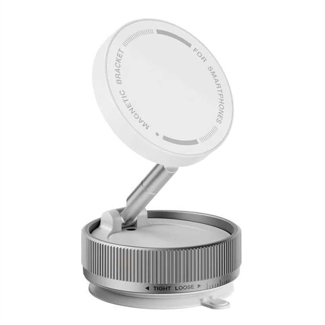 Vacuum Magnetic Phone Holder 360 Degree Rotatable Suction Cup Phone Mount,Foldable Vacuum Strong Magnet Cell Phone Stand for Car Smooth Surface(White)