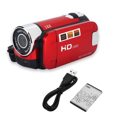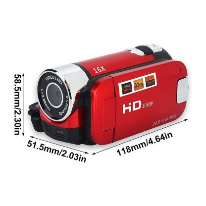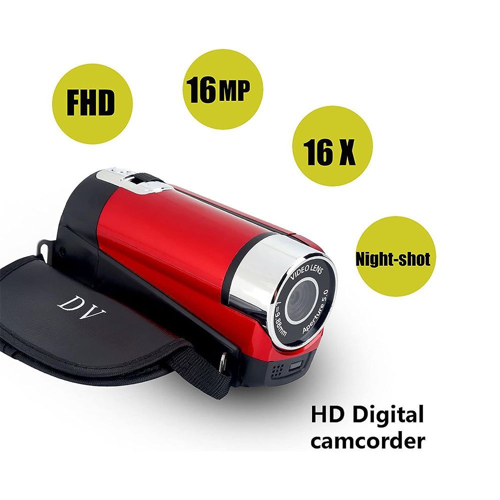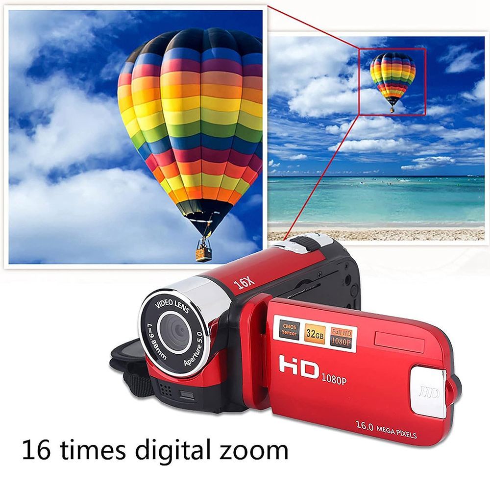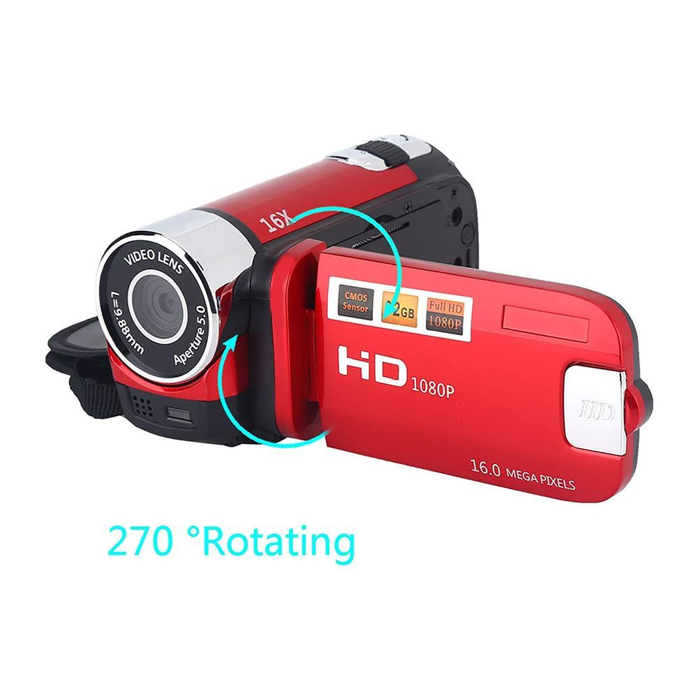 Video Camcorder Digital Portable Camera Recorer 270 Degree Rotation Full HD 16X DV Cameras for Travelling Vlogging Red