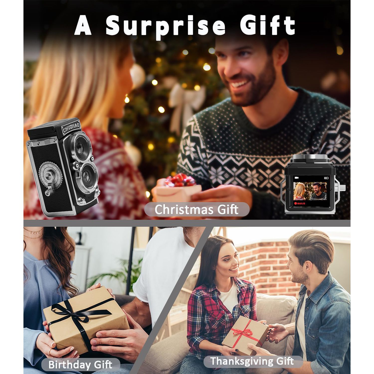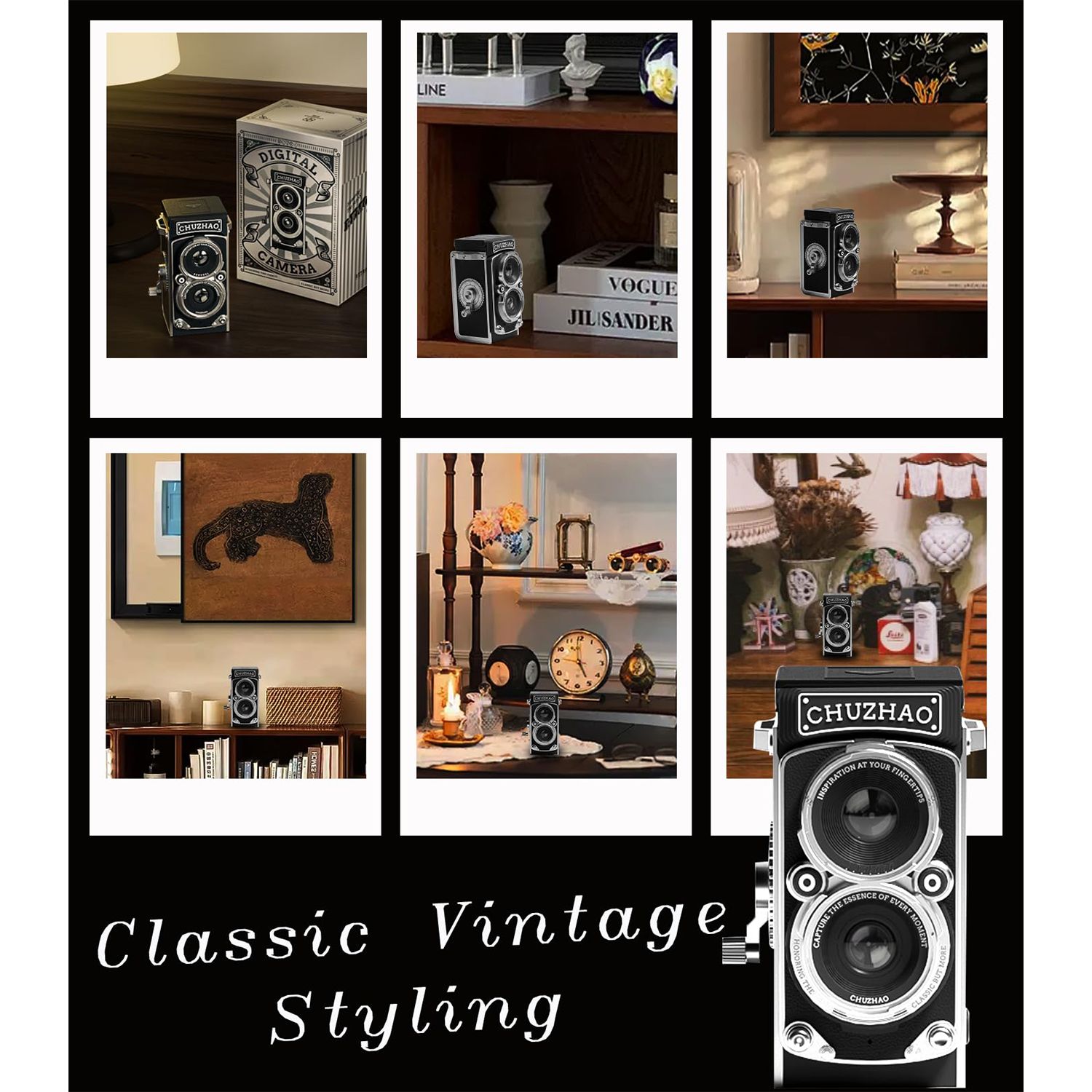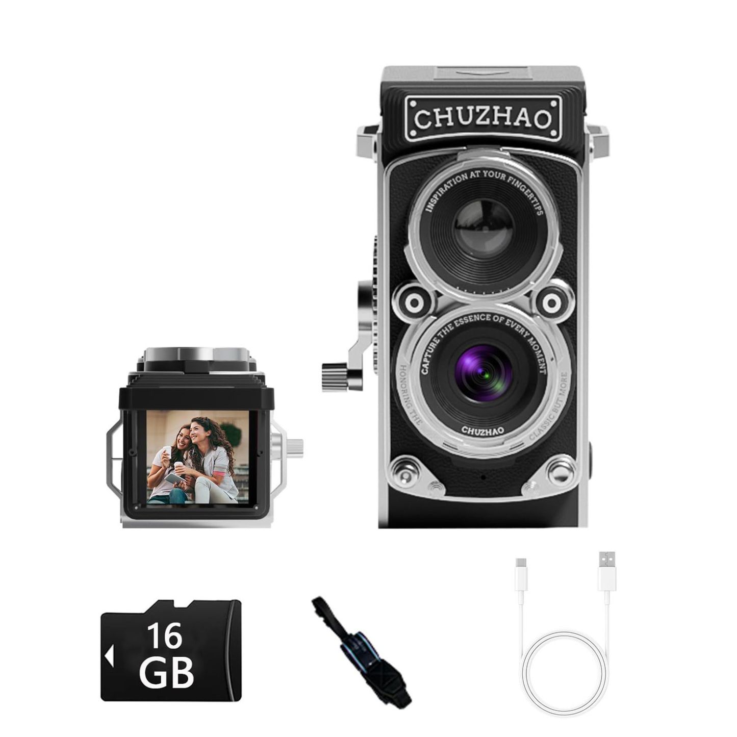 Vintage Camera Digital 1080P Video 12MP Autofocus Compact Vlogging Point Shoot 16GB Card Small Portable Black