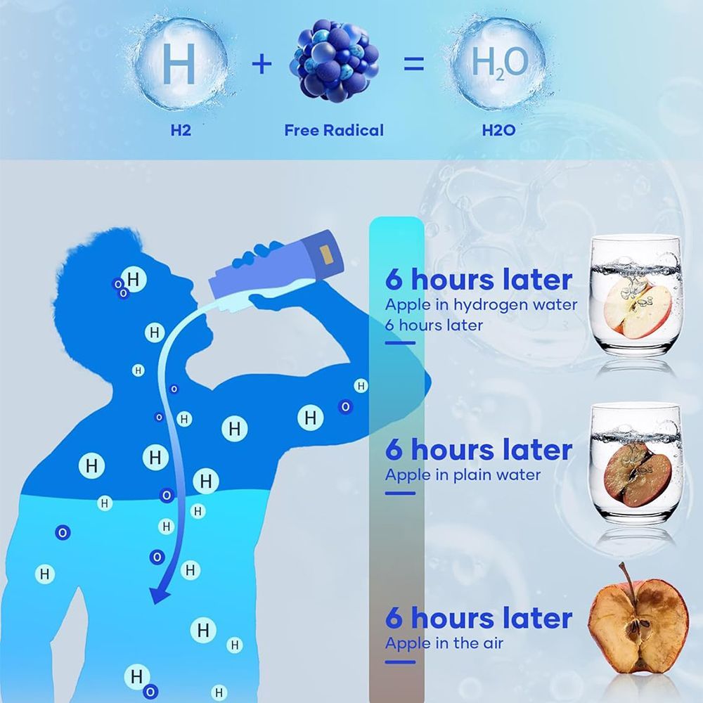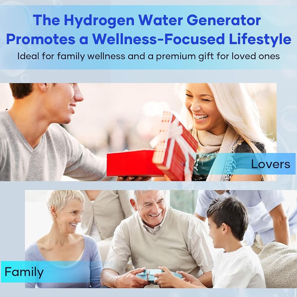 - Long-Term Benefits of Hydrogen-Rich Water: Scientific research shows that drinking 1.5 liters of hydrogen-rich water daily can boost metabolism, alleviate muscle soreness, improve sleep quality, and support overall health. The antioxidant effect is comparable to consuming multiple servings of fruits and vegetables. This hydrogen water bottle generator makes a thoughtful health gift for occasions such as birthdays, Thanksgiving, Christmas, New Year, and anniversaries.