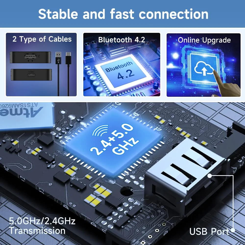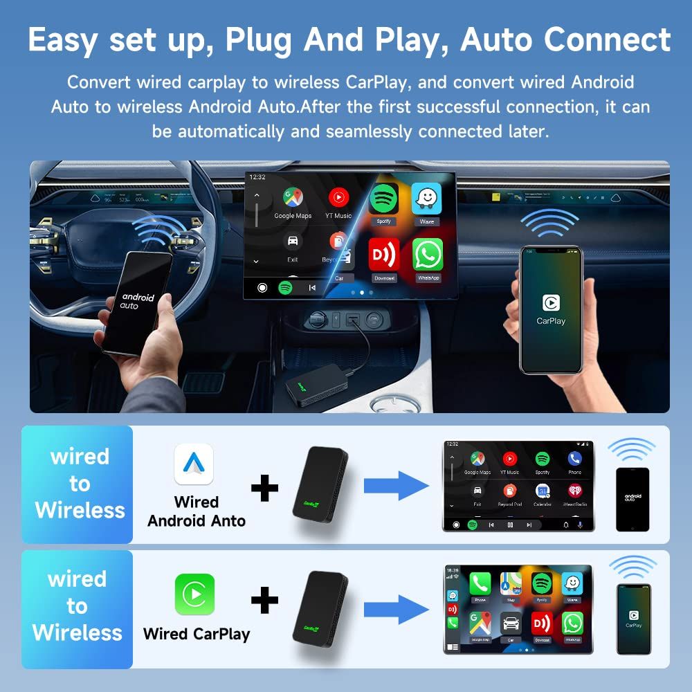 Wireless CarPlay 5.0 2air Adapter Android Auto Dongle Connect Lossless OTA Update iPhone Plug-in USB Link Seamless Driving Tech Gift