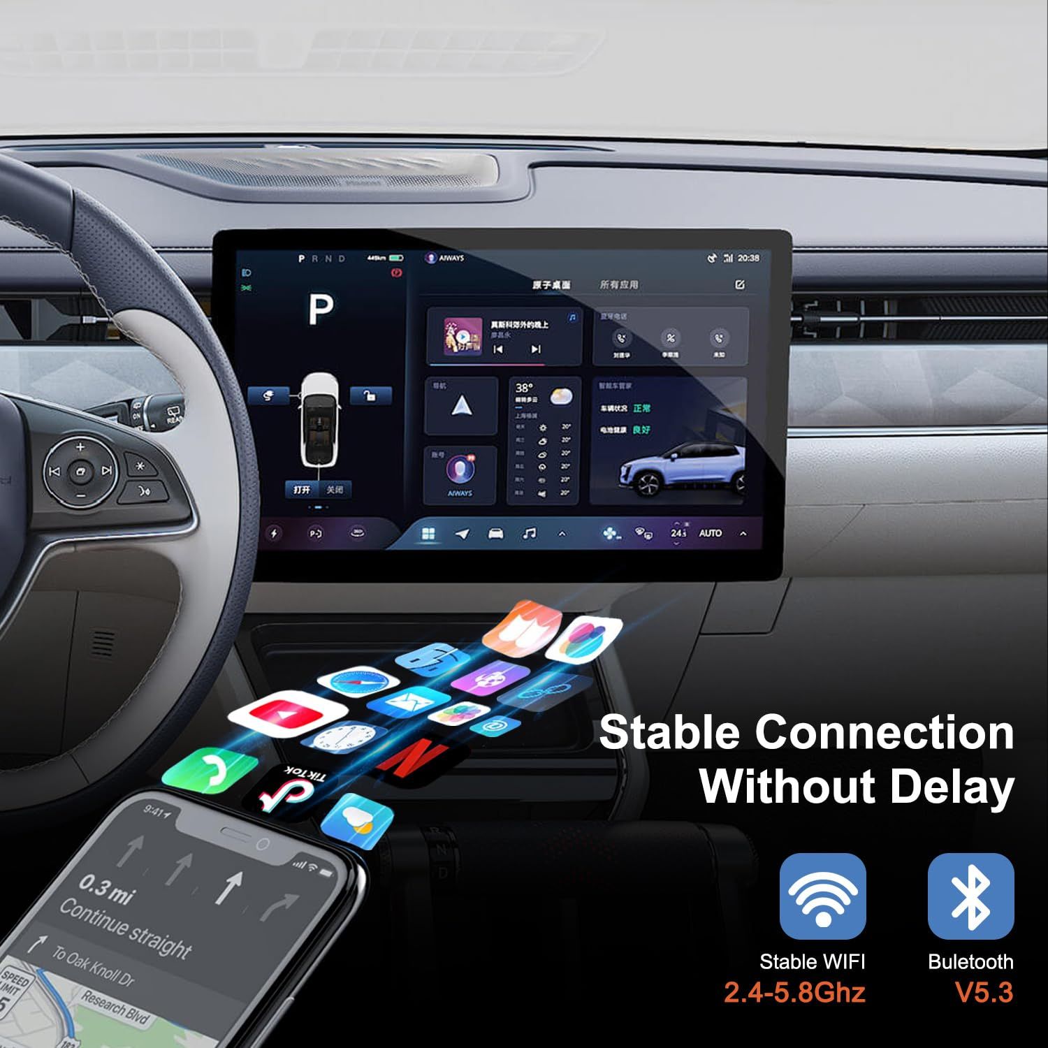 - Effortless Streaming Experience : With our wireless CarPlay adapter with Netflix, YouTube, and TikTok, you can enjoy streaming video play in your car. When you connect to use the video function every time, you need to manually connect to the network. (connect the dongle - select video - settings - network - connect to the hotspot of your phone or other available wifi)