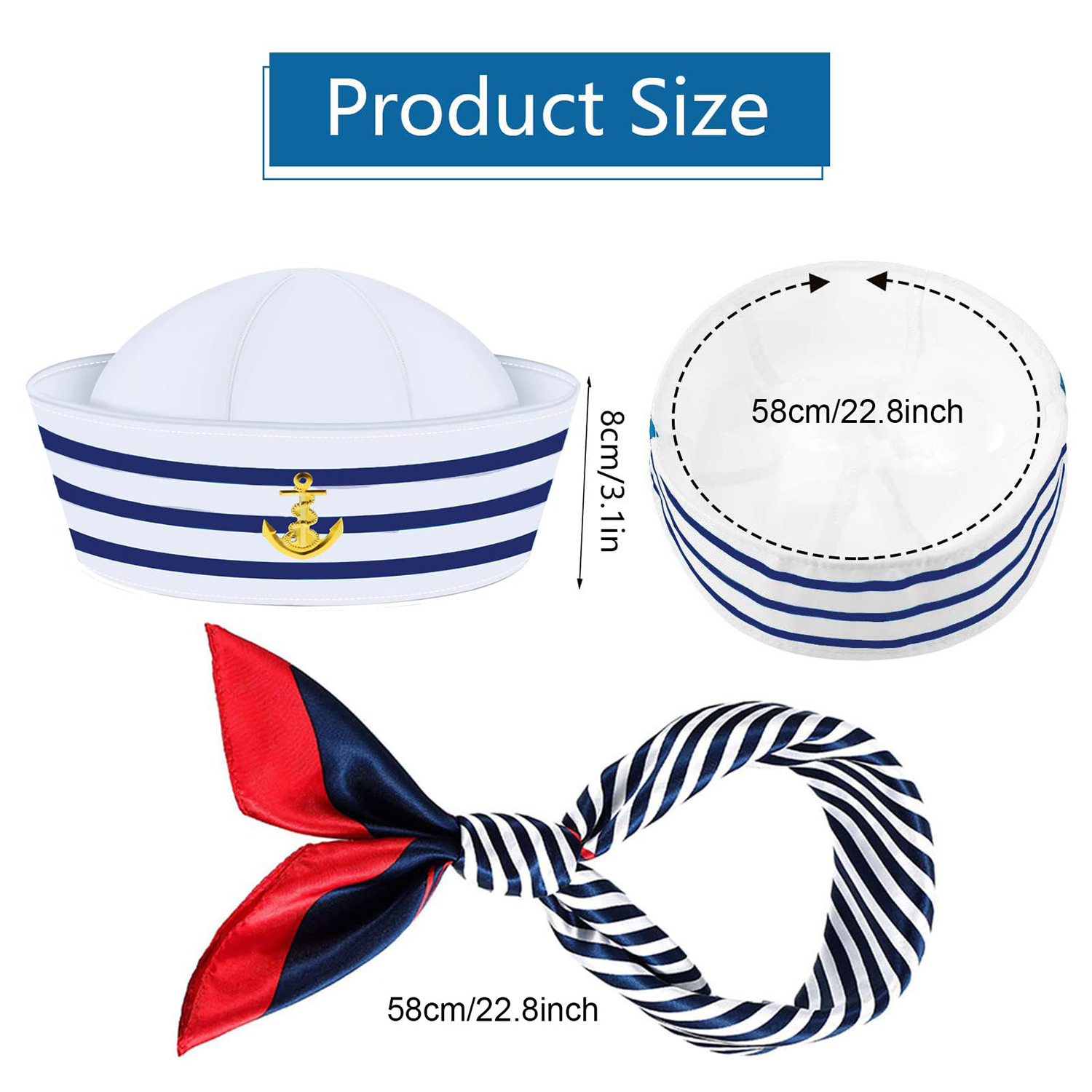 Yacht Captain Hat Sailor Ship Cap Scarf Sunglasses Sailor Hat Boat Costume for Men Women Captains Dressing up Party (2Pack)